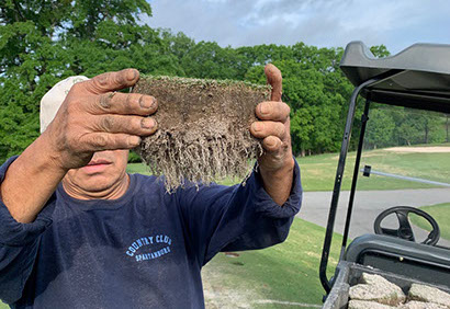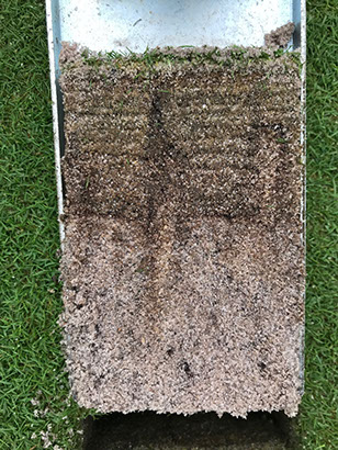 This was taken in September 2018 after I began in August. It shows the challenges ahead with the multiple layers and high organic matter accumulation that was present in the greens at that time.